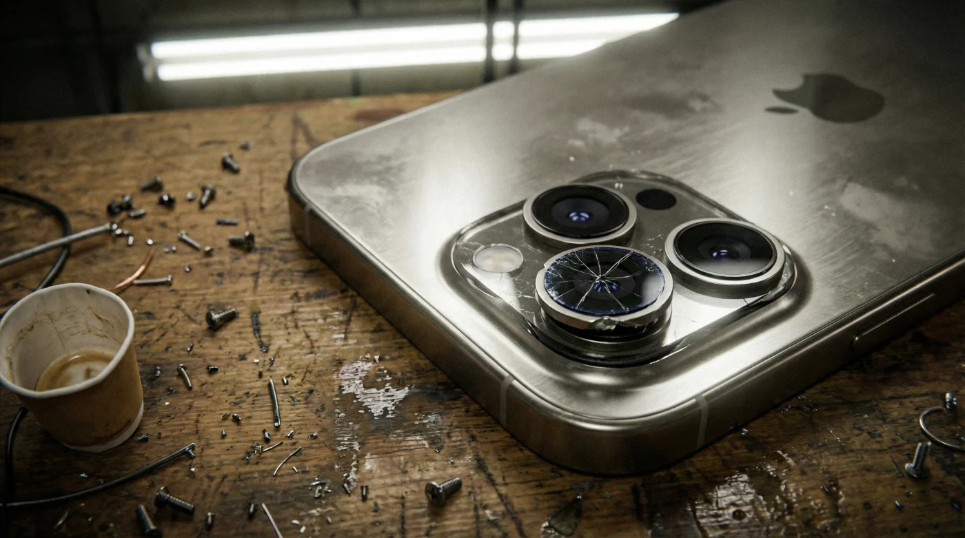 El sonido que sigue no es un golpe sordo y firme, sino un traqueteo metálico hueco e inquietante. Al intentar escribir con una sola mano, el teléfono baila erráticamente sobre la superficie de madera. Levantas el equipo, deslizas tu dedo índice hacia la parte posterior buscando ese punto de apoyo natural para sostenerlo, y en su lugar, la yema aterriza directamente sobre el borde afilado del nuevo lente periscópico, manchándolo de grasa al instante y raspando tu piel.