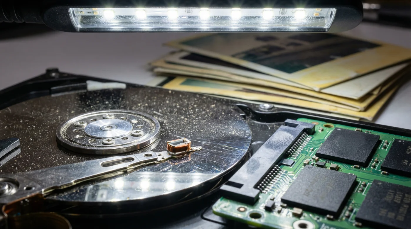 | Disco Duro Mecánico | Retiene la polaridad magnética sobre metal por décadas en buenas condiciones. | Tranquilidad absoluta de que tus fotos seguirán intactas cuando tus hijos crezcan, por menos dinero. |